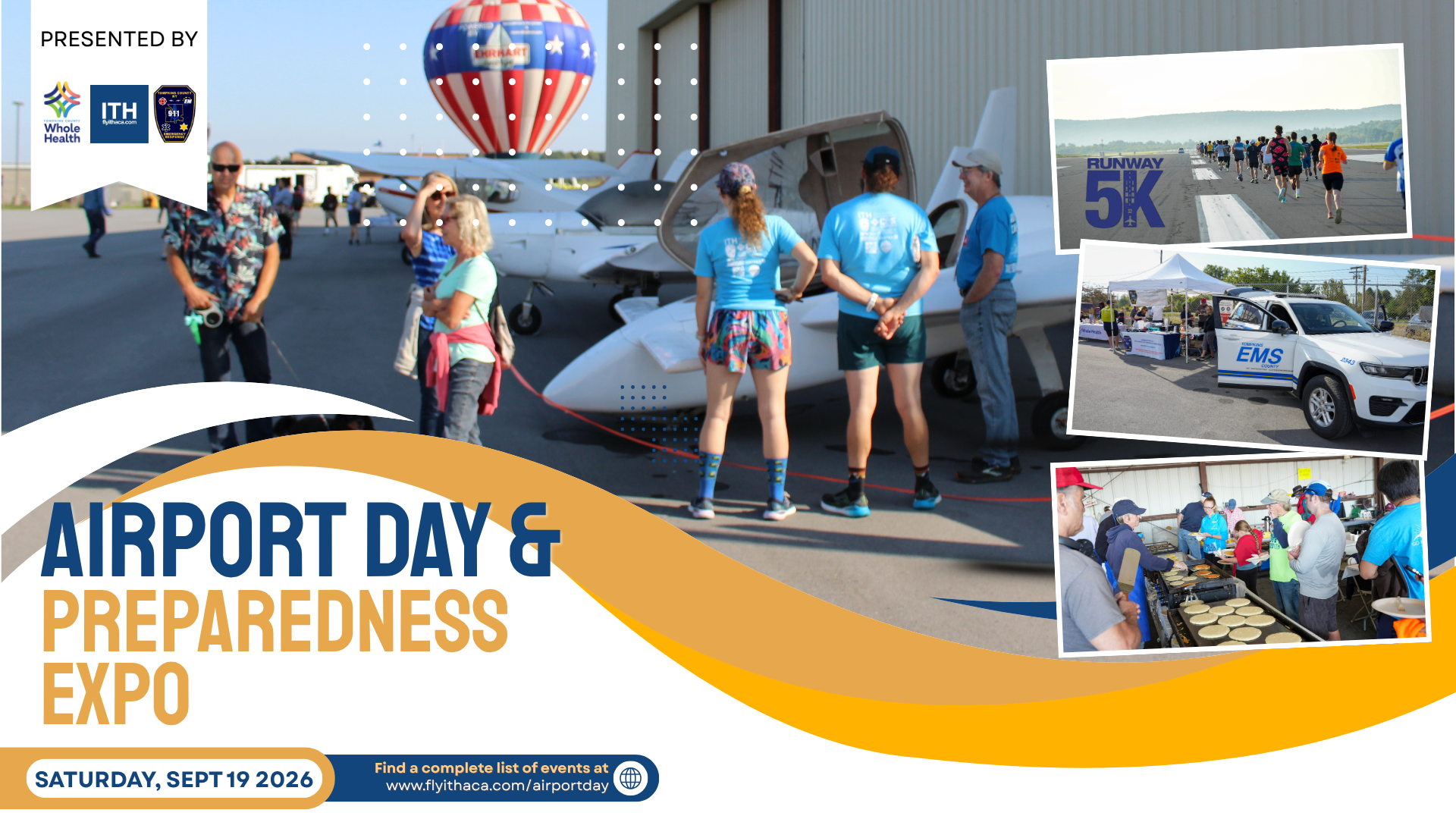 Mark your calendars—Airport Day & Preparedness Expo is back at Ithaca Tompkins International Airport (ITH) on Saturday, September 19, 2026, from 7:00 AM to 1:00 PM! This free, family-friendly event brings together the best of aviation, community preparedness, and local fun.