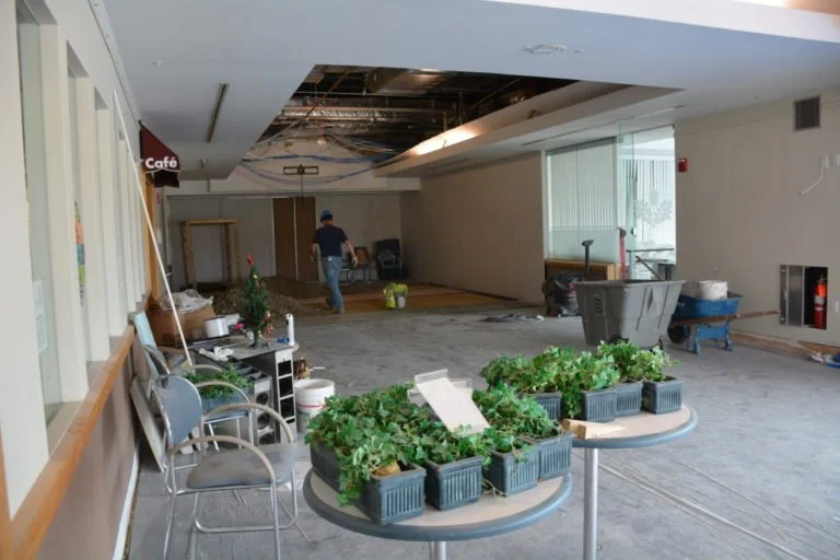 Lounge area under construction.